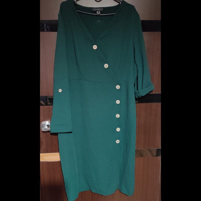 Очень красивое платье бутылочного цвета, ткань приятная к телу. ПОГ 57, ПОТ 49 есть шлейки для пояса, но его к сожалению нет, ПОБ 60, длина 114, длина рукава 62, плечи 45.