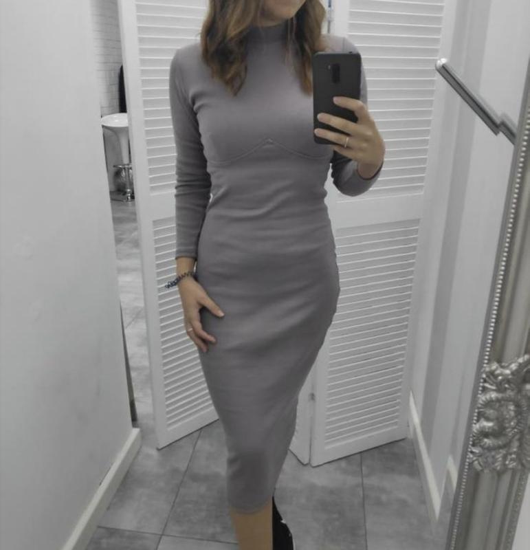 Сукня в рубчик з окантовкою під грудьми. Приталене. Довгий рукав. Тренд 2021