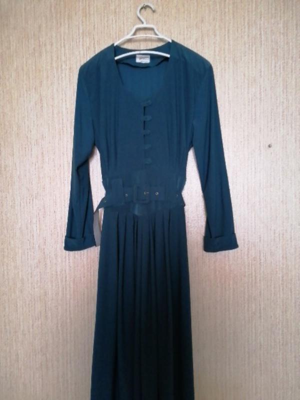 Материал с небольшим отливом. Размер : рукав 58 см , длина платья 117 см . Рукава с манжетами.