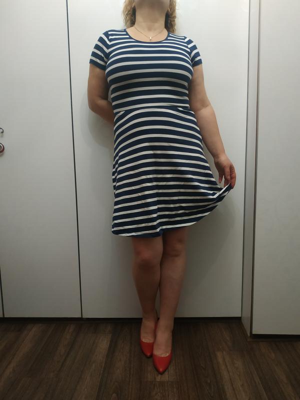 Милое платье в синюю и белую полоску. Не полнит.