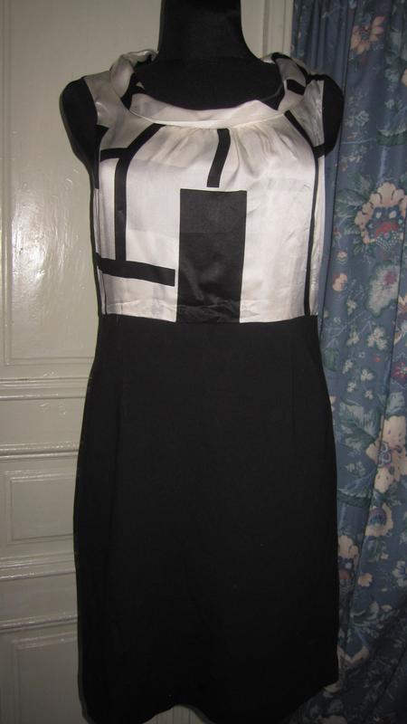 платье черно-белого цвета.верх-шелк.низ-65 хлопок.35 полиэстер.ПОГ 47.ПОТ 43.ПОБ 51.длина 92.сбоку молния