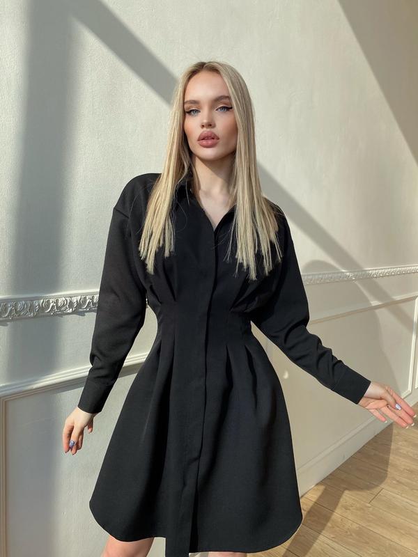 Платье-рубашка чёрного цвета с отложным воротником Размер: ONE-SIZE S/M,ONE-SIZE M/L Платье в рубашечном стиле — удобный и практичный вариант для женского гардероба Приталенный силуэт дополнили трендовыми защипами на поясе, благодаря этому образ остаётся женственным Артикул: 12696