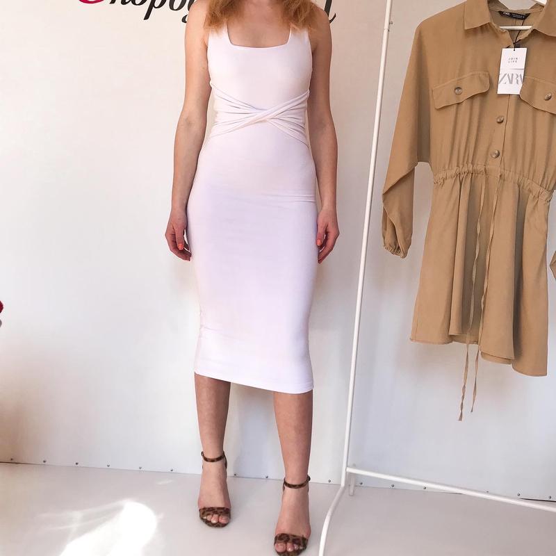 Біле плаття міді по фігурі Oh Polly Розмір Хѕ-S Ог 70-85 см Від 60 - 68 см Про 74 - 88 см Довжина 102 см Склад тканини: 93% віскоза, 7% спандекс Зріст моделі 160 см