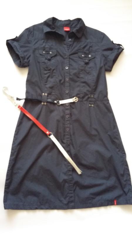 Сукня - халат темно синій. Довжина - 100 см Плечі - 40 см ПОГ -50 см ПОТ - 45 см ПОБ - 55 см Спідниця-трапеція, продаж без пояса,