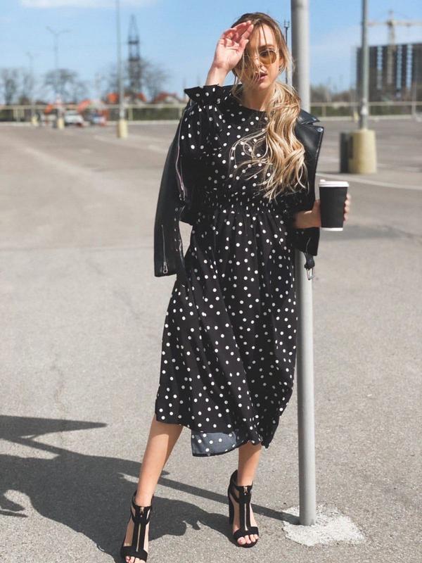 Платье миди турецкий плотный софт в горох
