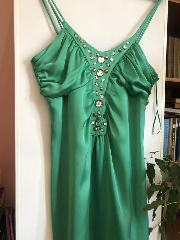Ніжно зеленого кольору плаття міді,камінчики якісно пришиті.