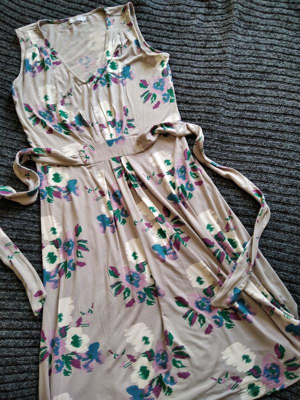трикотаж, вискоза 90%, 10 эластан, серое+цветы, дл. 96см, пояс вшит