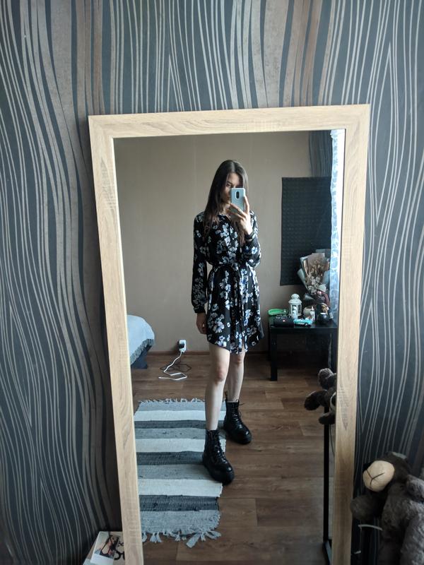 Лёгкое чёрное платье в цветочный принт. С функциональными пуговками по всей длине. Можно носить с поясом и без. На фото надето на рост 168