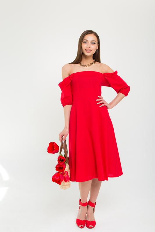 Красивое летнее платье из натуральной ткани лён. Застегивается на длинную потайную молнию.