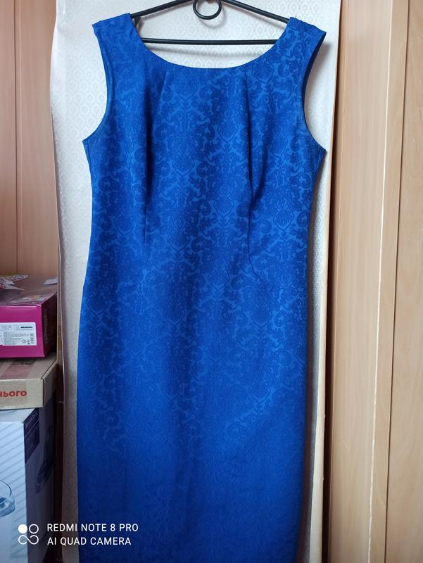 Нарядное платье красивого синего цвета с оригинальным принтом, размер М, L. Ориентируйтесь по замерам, ПОГ 47.5