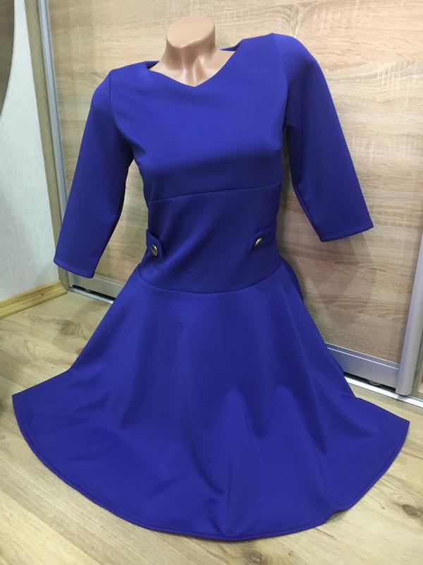 Шикарне плаття гарного кольору електрик. Тканина хорошої якості, трохи тягнеться. Поліестер з еластаном. Рукав 3/4. Заміри: Довжина - 89 Піт - 35 ПОГ - 40 ПОБІДИ - вільно