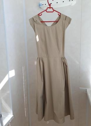 Платье красивого цвета, сзади интересная спинка. хорошо сядет на 38 размер. длина 105 см.