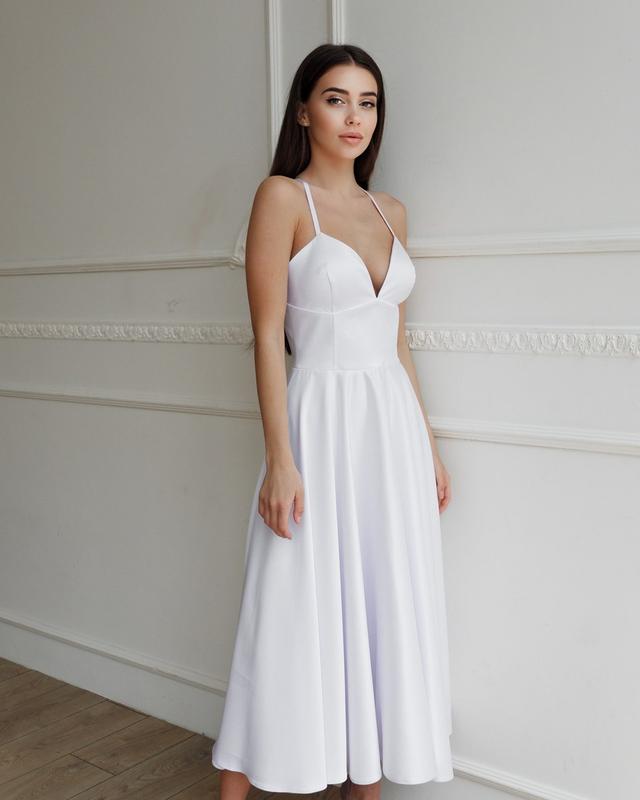 Платье с корсетным лифом и пышной юбочкой в белом цвете Размер: S,M Ткань: королевский атлас Артикул: 12996