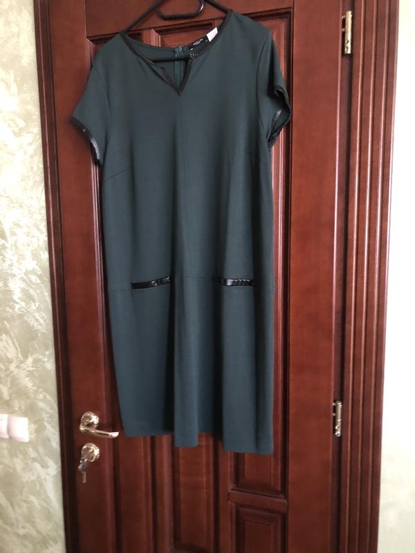 Продам платье красивого бутылочного цвета из плотного трикотажа с отделкой по горловине , краям рукавов и имитации карманов из эко-кожи Цвет на фото похож на серый , в