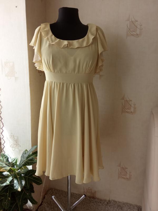 С безопасной оплатой не работаю. Работаю только из 100% подписки или если после платки, то тогда подписка 200грн, которая не возвращается при отказе от товара Снизитель, торгу, обмену, личными встречами нет. Фото на теле нет. В наличии. возможный запах обработки. Платье новое, но есть незначительные нюансы - последние 2 фото. На подкладке (чехле) дырочки - это нихо нож, и сзади возле молнии сделать буквально 2-3стежка - распустился немного шов. Платье состоит из подкладки (чехла) + 2слоя шифона нижний слой беж, верхний -желтый. Дырочок разумеется, что не будет видно, да и вообще не просвечивает. На манекене платье не застегивается, на своем размер будет выглядеть аккуратно, с открытой спинкой. Бюст можно одевать без проблем, он еще будет закрыт тканью платья. Одето на манекен 52 размера (ОГ 104см). #27. Замеры подкладки (чехла) : ПОГ 45-51см (открытая спинка), ПО под грудью 38см, ПОБ 50см, длина по боковому шву от подмышки 64 см. Замеры платья (верхний слой): ПОГ 52см, ПО под грудью 38см, ПОБ 70+см, плечи любые, длина по спинке от линии плеча 93 см.