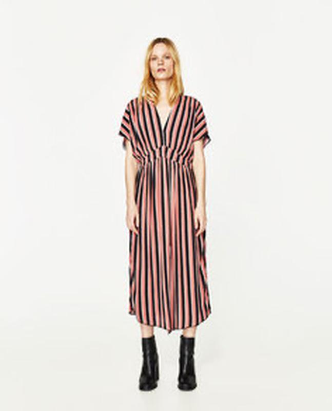 Стильное платье от бренда Zara в полоску. V-образный вырез, впереди разрез,подчёркнута высокая талия. Состояние идеальное.