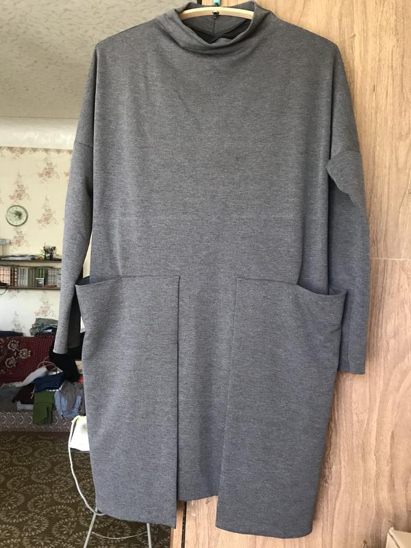 Платье мышиного цвета трикотаж плотный, размер 48-50, кармашки большие, все замеры предоставлю по запросу. Платье в очень хорошем состоянии и смотрится хорошо.