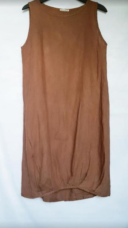 Льняное платье оверсайз миди ассиметрия свободного кроя р - 10 лен 100% цвет- молочный шоколад( фото не передает реальный цвет ) ПОГ- 53 см в бедрах свободно длина перед- 85 см зад- 93 см состояние новое