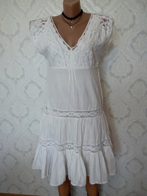 Уважаемые девочки!!! Мои дорогие покупательницы.Как и обещала, делаю огромные скидки на весь товар или моя доставка Укрпочтой Шикарное легкое платье на лето. Ткань натуральная.Хлопок. Очень красивое кружево.Под низом небольшой подьюбник Платье на размер М идеально. Состояние отличное. Одевалось пару раз. Причина продажи- стало маловато.. Производство Индия.. Очень красивое.Подходит под любой стиль и образ. Все замеры по запросу. Уважаемые мои покупательницы. К лету снизила цены на весь асортимент. Так как Вы просили, много блузок, летних платьев в продаже. Ближе к осени цены будут подниматься. Красотулички, ловите момент. Со мной всегда можно договориться. С радостью подберу и посоветую. Платье очень красивое и дышащее.Хлопок. Замеры Длина от плеча-95 см. Ширина от подмышки до подмышки-44 см