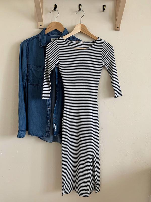 Платье миди бренда Bershka. Внизу разрез, рукав 3/4, очень приятный мягкий трикотаж. Состояние нового.