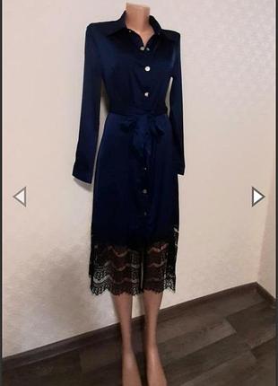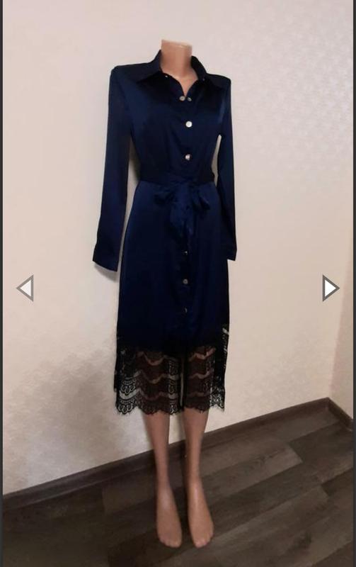 🔥Темно-синее платье-рубашка миди Oasis-Синие Очень стильное ,атласное,качественное ,эксклюзивное платье,низ-кружевной. Платье застёгивается на кнопки,что тоже ооочень удобно и классно Размер:S(42-44) M(46-48) Замеры в спокойном состоянии (материал слегка тянется) Размер S: Ширина плеч-36см Полуобхват груди-43см Полуобхват талии-42см Полуобхват бёдер-50см Длина рукава-58,5см Длина изделия-110см Размер М: Ширина плеч-38см Полуобхват груди-46см Полуобхват талии-44см Полуобхват бёдер-52см Длина рукава-60см Длина изделия-111см