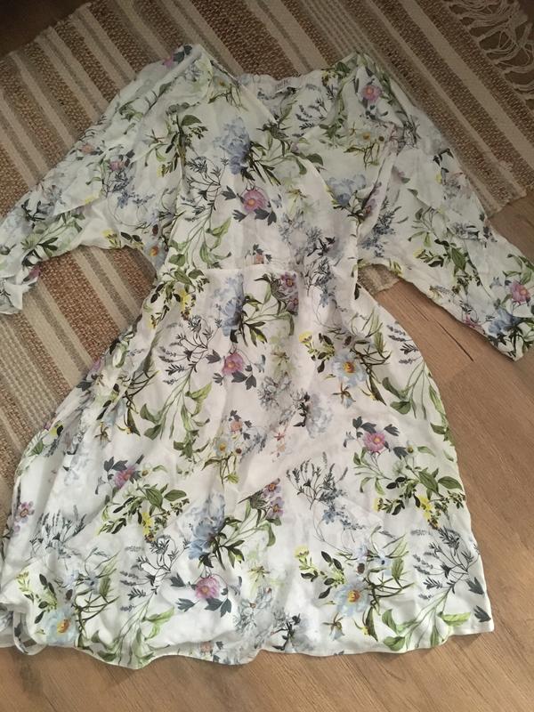 легкое платье с поясочком, на рукавах маленькие оборочки