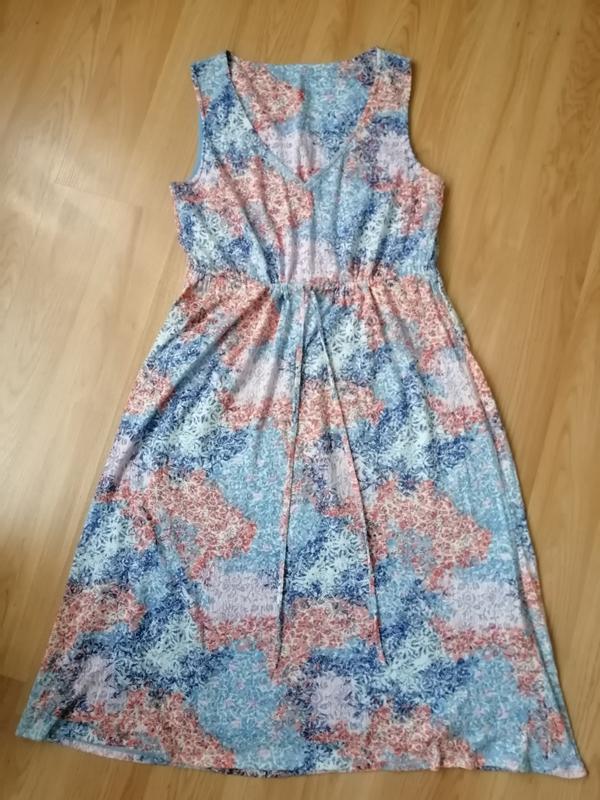 Симпатичное платье из фактурной ткани, полностью на подкладке, лёгкое, очень приятное, не мнется. Длина по средине спинки 100 см, плечи 32 см, ширина бретели 5 см, подмышки 44 см, ширина по кулиске (под грудью) 44 см, длина завязки 43 см, талия 52 см, бедра 58 см, низ 75 см. Платье должно быть свободным от кокетки.