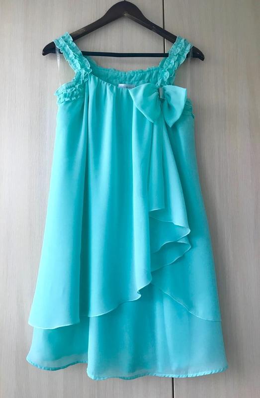 Бренд Cache Cache Нарядное бирюзовое платье на бретелях. Платье пышное, двухслойное, на подкладке. Платье украшено большим бантом, рюшами и складками из лёгкого воздушного шифона. Размер в наличии M. Может подойти еще и на S. Замеры платья: ПОГ 45, ПОБ ~60, длина по спинке с бретелями 90, длина по боковому шву 67. Состав: 100% polyester Доставка: Предоплата на карту Приват банка. Наложенный платеж НП с авансом. Отправка Новой почтой, Укр почтой, почтой Justin