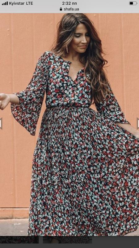H&M сукня шифонова, на підкладці. Платье длиной до икры из шифона с рисунком. Открывается сзади шеи с помощью пуговицы, плиссированные рукава и узкого эластичного шва на талии с расклешенной юбкой со складками. Подкладка. Склад: 100% полиэстер