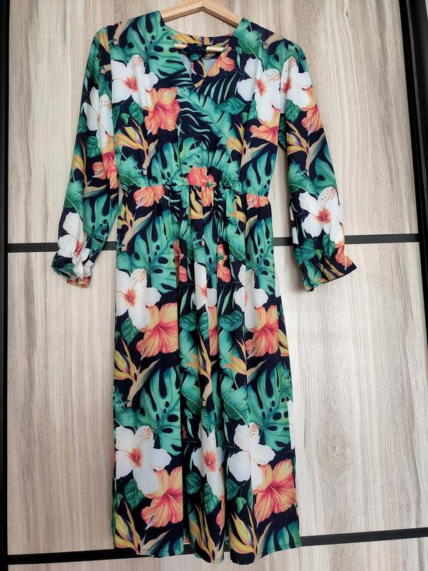 Платье в цветы. Очень красивое. Ткань софт. Рукавы и талия на резинке. Размер XS/S. Состояние идеальное. Замеры по запросу.