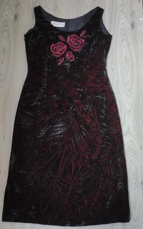 Дуже красиве оксамитове плаття ,маленька розпорка збоку довжина по задньому шву-94 см. під рукавами -45 см талія-39 бедра-48