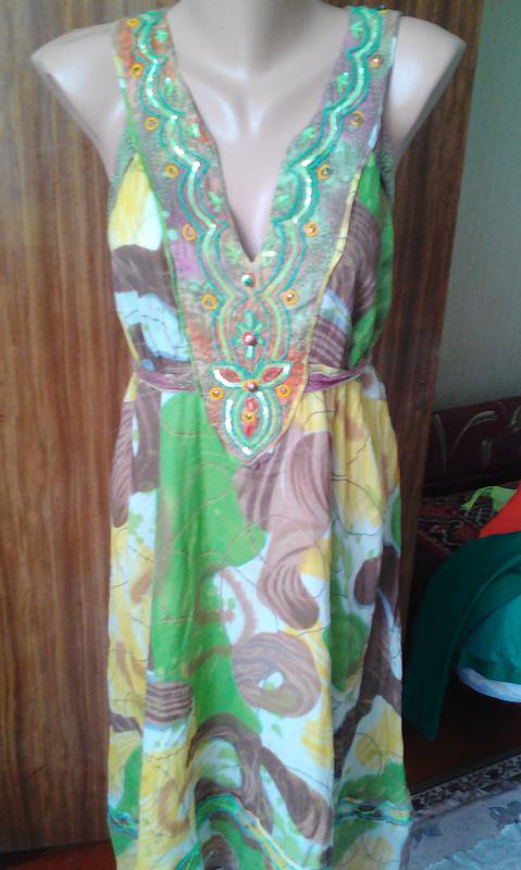 Летний сарафан хлопковый расшитый паетками и бисером спереди и снизу изделия есть пояс под грудь