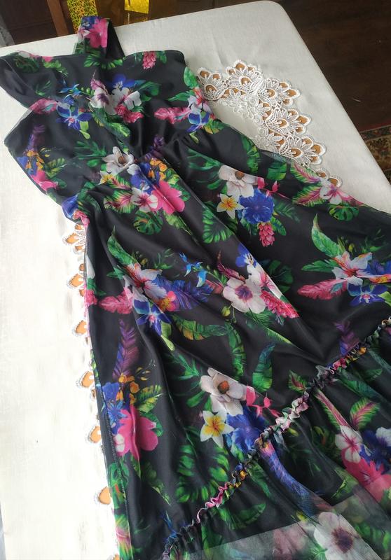 красиве, стильне плаття ) спереду і на спині переплетене, під грудьми резинка, потім йде вільно ) ззаду подовжене ! одягнуте 1 раз . розмір С-М. є фото на тілі )