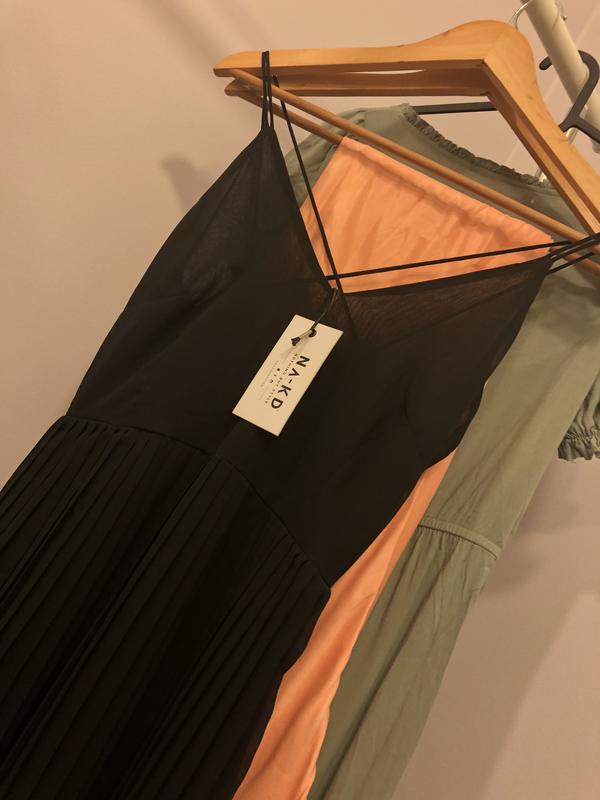 Новое платье - сарафан NA-KD. Очень красивое😍.. ткань приятная, длина миди идеальная👌На небольшую или среднюю грудь будет хорошо... Не просвечивается☝️Идеально сядет у кого размер S или между S-M.. Пишите, задавайте вопросы.. отвечу😊😉Длина от самых шлеек 109 см