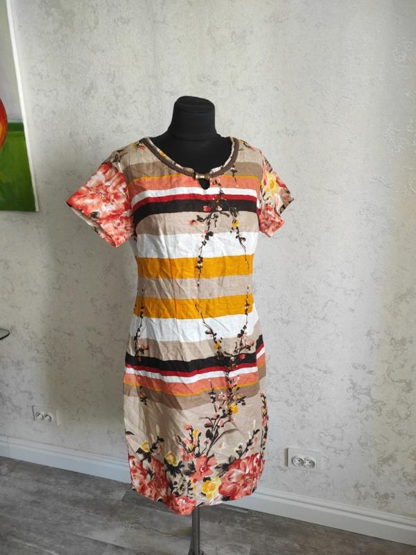 платье натуральный лен новый размер 50, по груди 52 см, по талии 46, по бедрам 58 см, высота платья 100 см