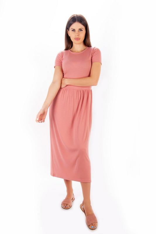 Лёгкое женское платье из поливискона. Модель с короткими рукавами, округлым вырезом, отрезная по талии с присборкой, длиной миди. Платье выполнено в разнообразной цветовой гамме, будет отличным дополнением базового летнего гардероба каждой женщины. Дополнить стильный образ можно лёгкими кедами или босоножками. Полотно высокого качества, благодаря фактуре "рубчик" достаточно эластичное, хорошо облегает фигуру. Полотно: поливискон Состав: 50% вискоза, 45%полиэстр, 5% эластан Рекомендации по уходу: стирать при температуре не более 30°C.