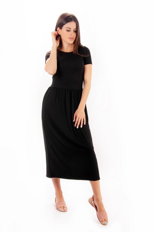 Лёгкое женское платье из поливискона. Модель с короткими рукавами, округлым вырезом, отрезная по талии с присборкой, длиной миди. Платье выполнено в разнообразной цветовой гамме, будет отличным дополнением базового летнего гардероба каждой женщины. Дополнить стильный образ можно лёгкими кедами или босоножками. Полотно высокого качества, благодаря фактуре "рубчик" достаточно эластичное, хорошо облегает фигуру. Полотно: поливискон Состав: 50% вискоза, 45%полиэстр, 5% эластан Рекомендации по уходу: стирать при температуре не более 30°C.