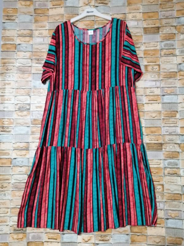 Класне літнє плаття ярусами. З боків у швах кишені👍👍 тканина легка штапельная, дуже приємна і спадаючу. Розмір 18-20. Довжина 112,пог 57