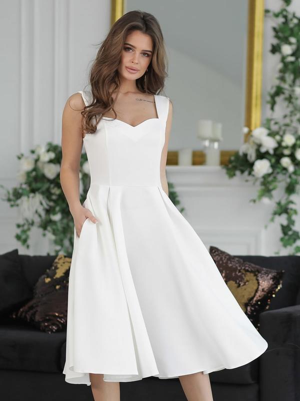 Белое платье миди. Подчёркивает все достоинства фигуры. Материал костюмка. Размер 44, М. Платье НЕ ПРОСВЕЧИВАЕТСЯ, качество ткани очень хорошее и плотное