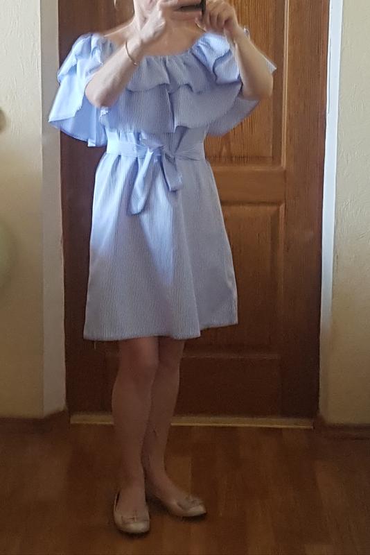 Летнее платье форма трапеции,с поясом. Цвет -голубая полоска ПОГ -46см ПОБ-51см ДЛИНА-71,5см размер М хлопок