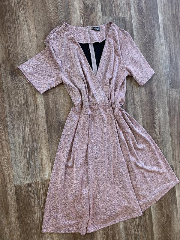 Нежное платье, стройнит , тянется , имеет деликатные блестки которые придают ему шарма . Одето раз! Считайте новое