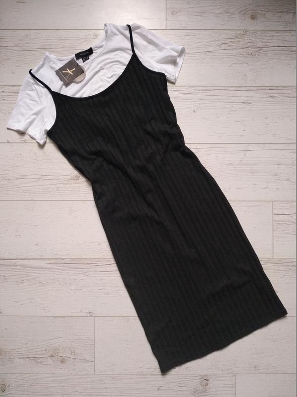 Это одна вещь - сшиты между собой. Ткань отлично тянется. Длина 95 см. Плечи 36 см. ПОГ 38,5 см. ПОТ 33 см. ПОБ 39 см. Состав: футболка: 97% вискоза и 3% эластан, сарафан: 6% полиестер 4% эластан