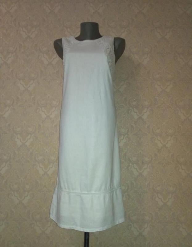 белоснежное льняное платье на хлопковой подкладке.Платье в идеальном состоянии,размер указан M,подойдёт и на L. пог-48см поб-51см длина-102см