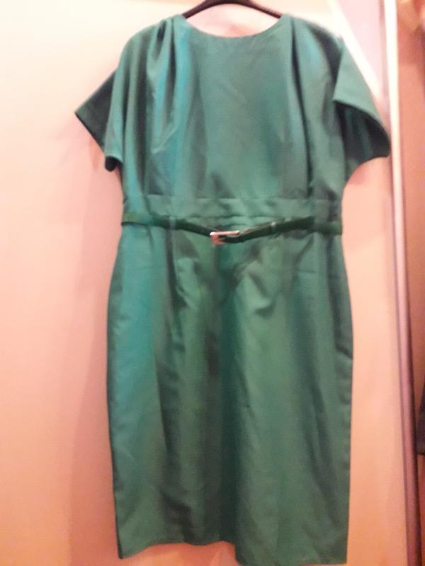 платье в деловом стиле, несмотря что в таком стиле, скрывает все недостатки, красивого зелёного цвета, сверху на плечах защипы, которые расширяют объём груди и уже не важно какого размера грудь, можно и для большого, рукав цельный, то-есть приспущенные плечи делают рукав, на поясе,ПОТ-48см., ПОГ-65см., длина платья-102см, состояние новое, но без бирки, состав: 35%-коттон, 35%-вискоза, 30%-полиэстер, размер-ХХХL