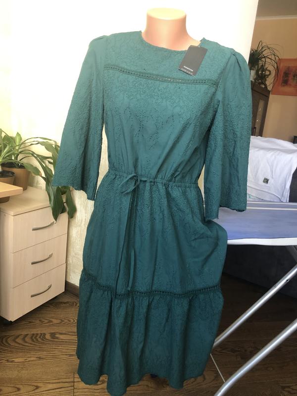 Р.36 Довжина 97 см Колір - темно зелений насичений Пог 46 Пот 46, пояс ком регулюється в меншу сторону Рукав 3/4