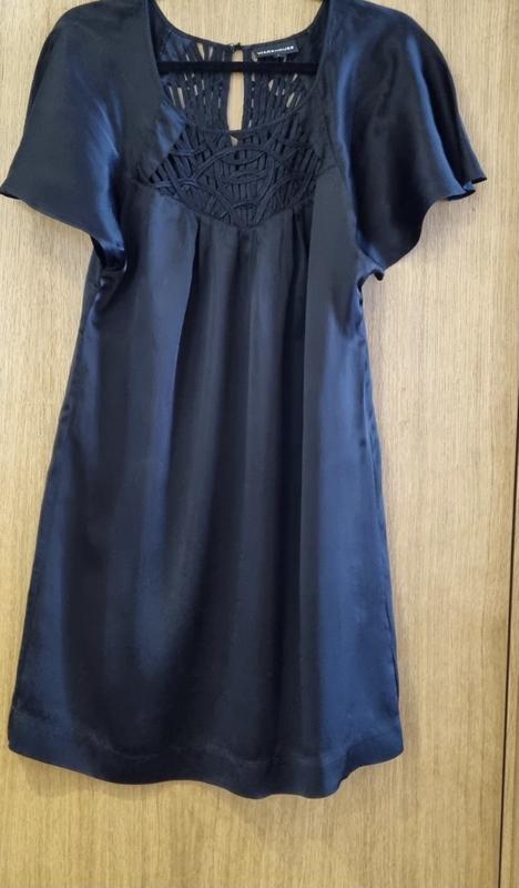 Шелковое платье Размер 12(L), но прекрасно сидит на 10 (М) Замеры:пог 47 - 54 (сборочка) Длина - 89 Состояние идеальное.