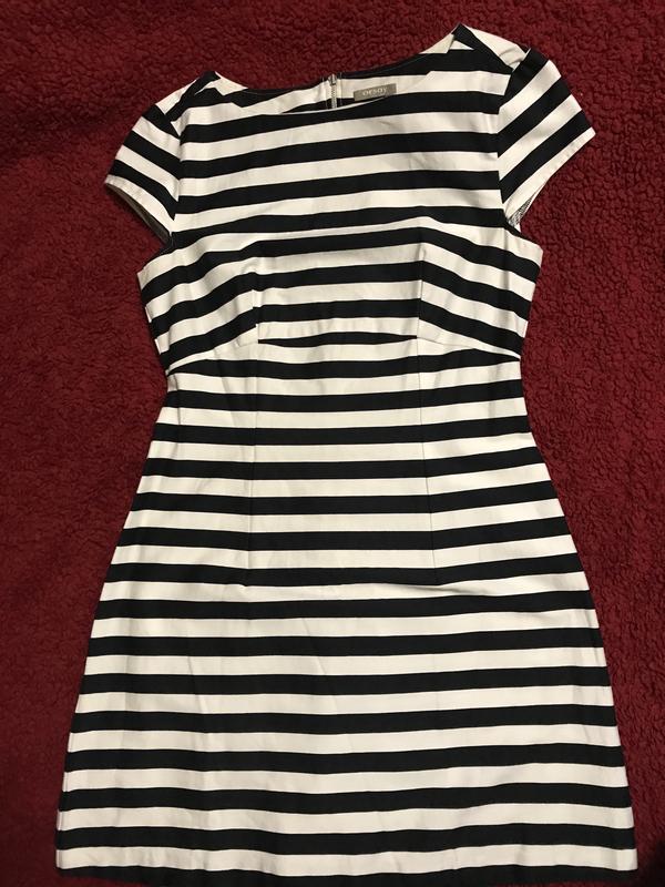 Полосатое(ширина полоски 2 см), стрейчивый Коттон: S-M размер:длина от плеча 85 см; плечо 7 см;длина рукавчика 10 см;ПОТ 38 см;ПОБ 46 см; ПО низа 58 см; длина змейки 54 см.