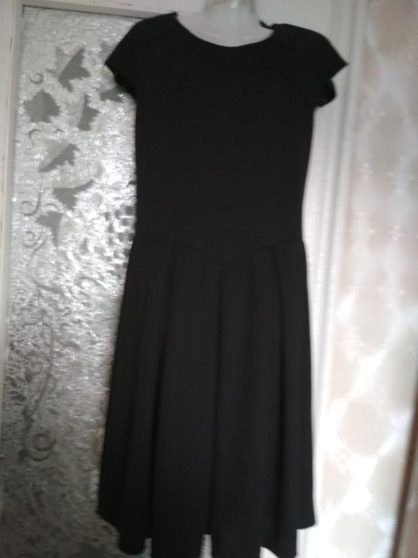 Чёрное трикотажное платье в складочку. Ткань очень приятная к телу.Складки - 3 впереди, 3 - сзади, по бокам - 1.Талия занижена .Фигурная кокетка впереди. Прямая сзади.Длина рукава -18, Ширина - 16 .ПОГ - 49 ПОБ - 46 Длина -102