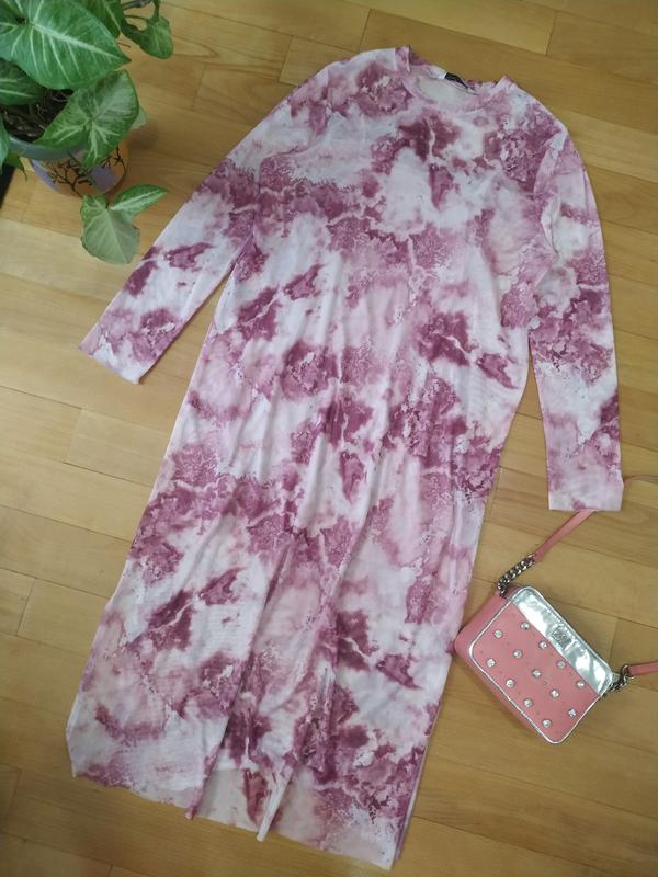 Красивое платье миди в актуальный принт тай дай Ткань сеточка, тянется Сидит свободно На подкладке Замеры по подкладке ПОГ. 44 -49 ПОБ 52-54 длина 83 общая длина 113