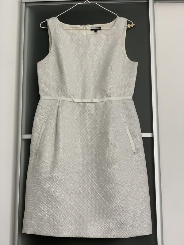Нарядное платье, в английском стиле. Очень красиво смотрится . Одето один раз.Ткань с вплетением люрексовой ниточки. Размер 48 . Известный бренд. Привезено с Германии. Объём гр 100, талия 80, бедра110, длинна 96. На подкладке.